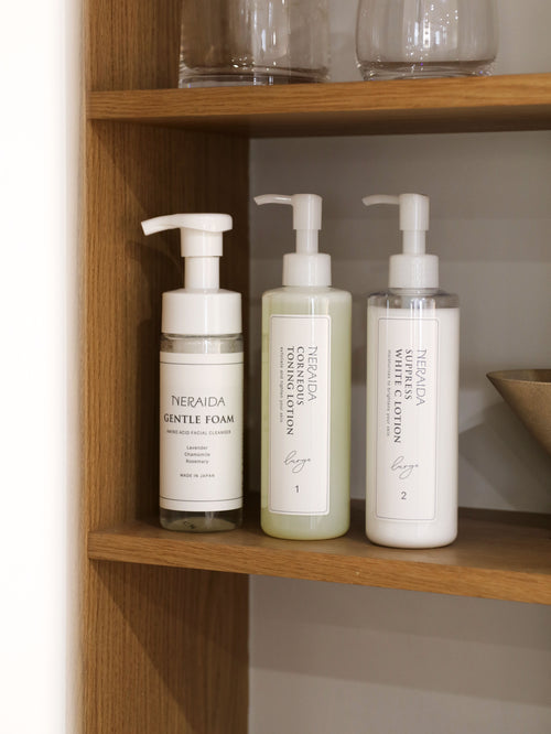 ローションをコットンにとり、肌の表面をこすらずにやさしくなでるようにすべらせます。顔だけでなく、首やデコルテ、耳の後ろ、そのほかごわつきが気になる箇所にご使用ください。そのあと保湿化粧水や乳液、クリーム、美容液などをつけてください。